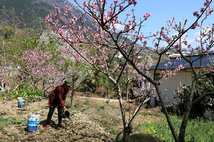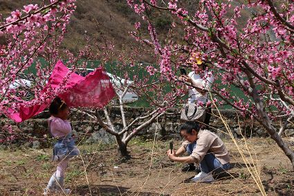 這個時節(jié),著名的賞花之地當(dāng)屬瀘定縣冷磧鎮(zhèn)杵坭的桃花谷。從瀘定縣城出發(fā),沿著大渡河右岸一路往下,行約20分鐘就能看到美麗的田野景色。只見,山頭上,田野間,或是房前屋后,統(tǒng)統(tǒng)換上了美麗誘人的春裝。放眼望去,李花、桃花、油菜花競相綻放,爭奇斗艷。這里,桃花尤其繁盛,沿著山谷錯落有致、次第盛開,讓人目不暇接,用一步一景來形容也一點(diǎn)不為過。
