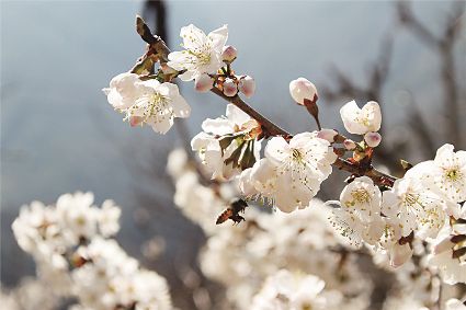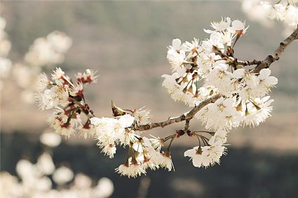 說起三月瀘定的美,可不止油菜花。在冷磧鎮(zhèn),純白如雪的櫻花也競相開放。它們花團錦簇,映著藍天,頗為壯觀。櫻桃花林中,簇簇花兒綴滿枝頭,潔白若仙。微風(fēng)吹過,滿樹搖曳,像極了千萬個精靈在春色中舞蹈。
