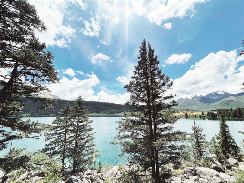 措普溝匯集了山川景物的精華,雪峰、冰川、原始森林、湖泊、河流、峽谷、瀑布、溫泉、草原、野生動(dòng)植物、藏族風(fēng)情。特別是被雪山半環(huán)繞的措普湖,有山有水,顏色層層遞進(jìn),清澈見(jiàn)底,在陽(yáng)光的折射下波光粼粼。