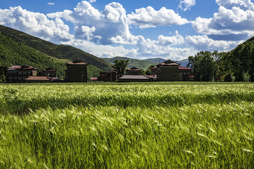 然后行走在山水之間,擁抱大自然,尋找屬于自己的“詩和遠方”。油綠的青稞、小麥,散發(fā)出濃郁的田園風(fēng)味;天邊群山起伏,磅礴的氣勢瞬間感覺人在自然面前實在太渺??;帳篷點綴著開滿野花的牧場,牦牛哞鳴,一片生機,細細體會牧民“逐水草而居”的生存智慧......