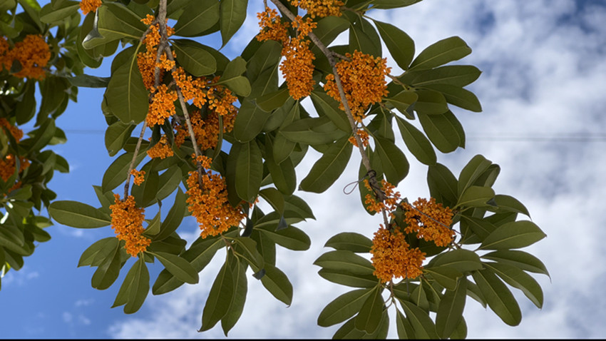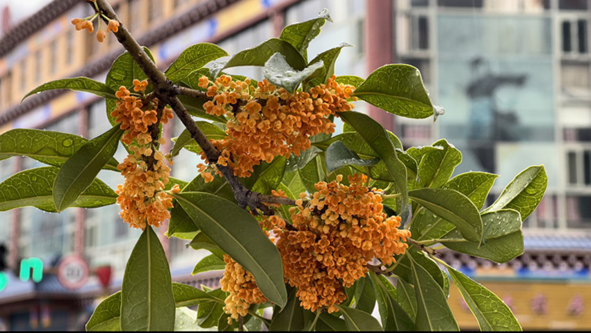 無間纏綿的秋雨后,漫步在巴塘的街道,悠悠的一股香氣沁入心扉。此時,頭頂?shù)乃{(lán)天,云卷云舒,嬌小的丹桂掛在樹梢枝頭輕輕搖曳,花香詩意相融于高原江南別有意趣。
