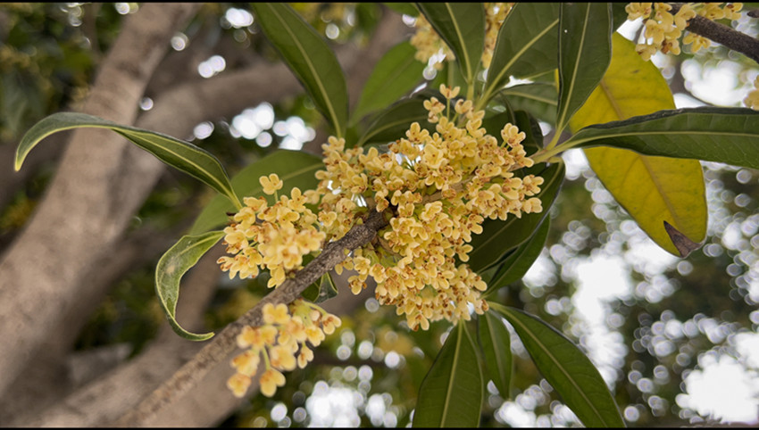 九月的鵬城巴塘,大街小巷叢桂怒放,點(diǎn)點(diǎn)桂花密密匝匝地簇生于葉腋或攢聚于枝頭,清香彌散。清涼的秋風(fēng)攜著醉人的花香,似乎就在不經(jīng)意間入了芳心,醉了滿城,迷了萬千。