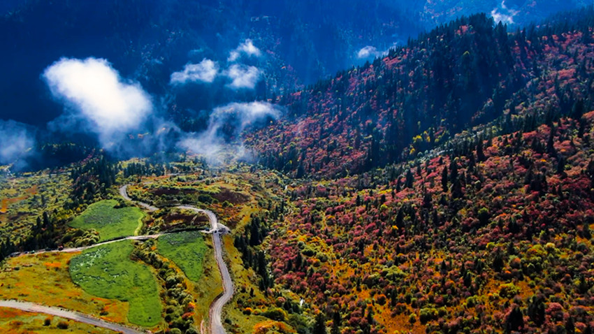 在亞拉雪山景區(qū)白云、雪山、溪流、湖泊、彩林和蜿蜒的林間小道,籌備著接受時(shí)光的檢閱;在國(guó)道G350沿線,高大的行道樹(shù)矗立兩旁,陽(yáng)光透過(guò)黃葉斑駁散落,這是白楊對(duì)大地一年一度的禮贊;在鮮水河大峽谷國(guó)家森林公園,山河披上金色華服,紅楓將最后的力量綻放成花朵贊美鮮水的波瀾、時(shí)代的壯闊;在玉科千畝連片彩林,金色畫卷鋪展大地,肆意蔓延;在甲依拉措,循著落葉松金黃的誘惑它將絕美寶石珍藏于雪山下,等待你驚喜的表情;在道塢濕地公園,黃葉倒影在綠水中白鷺、野鴨,愜意人群、互為生趣,自然贈(zèng)予的歡愉最是秋季。