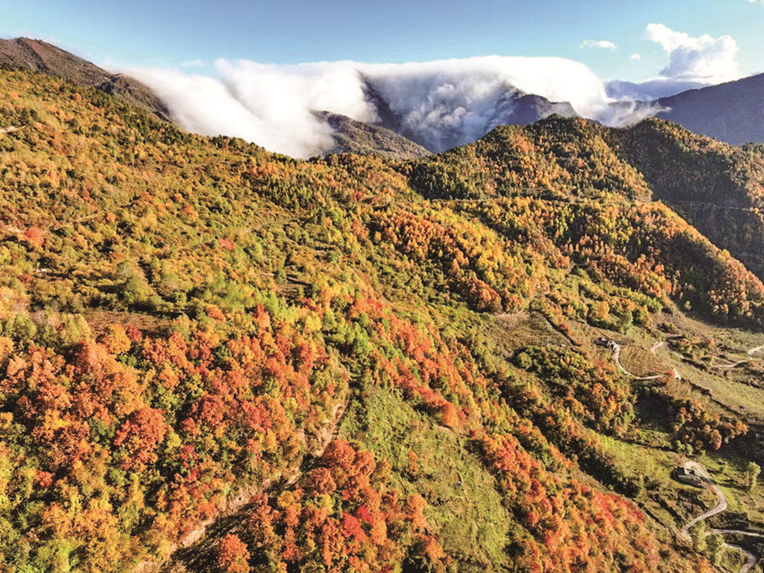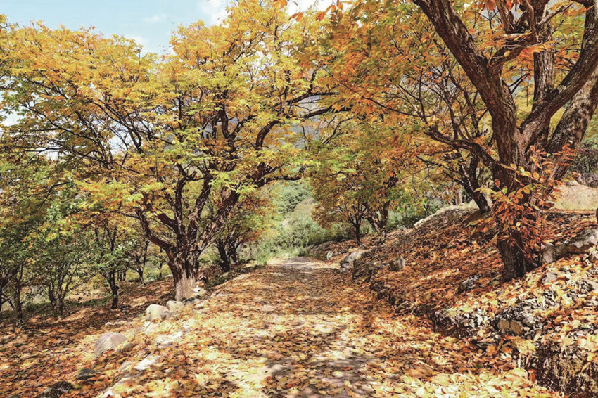冷風(fēng)肅起,大雁南飛,銀杏樹開始了一年中最華麗的篇章,風(fēng)兒吹過,銀杏樹葉紛紛揚揚地,從樹上飄落下來,宛如無數(shù)只金色的蝴蝶,在空中漫天飛舞?!八厣鷿狻保瑵M山層林盡染,演繹著另一番亮麗。多種色彩交織在一起,如同一幅流動的美麗畫卷,使得這個季節(jié)更有韻味。