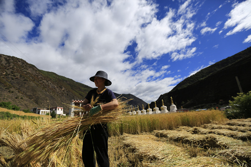 風(fēng)吹麥田千層浪,麥穗飄香農(nóng)家忙。夏至已到,我州巴塘、鄉(xiāng)城、丹巴等地的小麥陸續(xù)進入成熟期。小麥陸續(xù)開鐮收割,廣大農(nóng)民群眾搶抓天氣晴好的有利時機,加緊搶收小麥,確保夏糧豐收、顆粒歸倉。