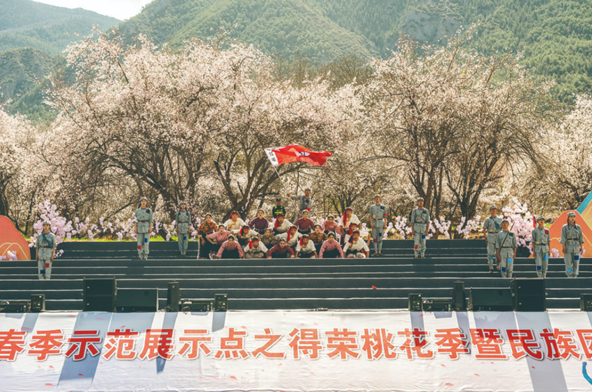 得榮縣緊抓白松鎮(zhèn)日當(dāng)村被國家文化和旅游部確定為2024年“四季村晚”春季“村晚”示范展示點(diǎn)的契機(jī),通過開展以“踏春賞桃花、同話一家親、共謀新發(fā)展”為主題的桃花季系列活動,集聚鄉(xiāng)村資源,促進(jìn)文旅融合,進(jìn)一步鑄牢中華民族共同體意識,激發(fā)新時代鄉(xiāng)村振興的文旅活力,以文旅產(chǎn)業(yè)“開門紅”,帶動全年經(jīng)濟(jì)發(fā)展“滿堂紅”。開幕式通過四川交通廣播視頻號、新浪微博、康巴傳媒、微甘孜、陽光得榮等平臺同步直播,獲得80余萬次觀看。同時,活動圖文、視頻信息聚合的微博話題#四川這地十里桃林盛開#已獲得524.6萬次閱讀,登上微博同城熱搜榜。