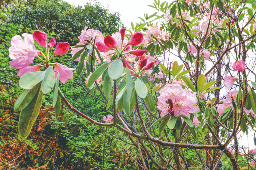 九龍縣被稱為高山杜鵑的故鄉(xiāng)。每年5月,九龍春光明媚,花潮涌動,漫山遍野各色花兒爭奇斗艷,然而杜鵑花在其中最為耀眼奪目。杜鵑萬紫千紅,匯集在一起,深淺濃淡,開得爛漫又無所拘束,在嫩葉的襯托下美不勝收。