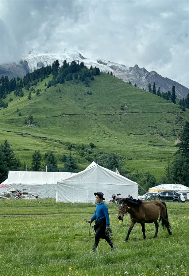 不管然日卡村還是則巴村,村民的勤勞善良也一樣讓人印象深刻。然日卡村的藏族姑娘丁真拉珍剛過18歲,卻經(jīng)常像個(gè)將軍去山上放牧和指揮100多頭牦牛,如果時(shí)間允許,她還去挖蟲草和松茸,但同時(shí)又在村里當(dāng)旅游向?qū)?,騎上摩托、牽上馬匹帶游客四處參觀,每天忙得不亦樂乎;同樣是然日卡村的小伙澤仁剛?cè)⒘宋棠饭媚?,他們從傳統(tǒng)的放牧中抽身出來,與村里許多年輕人一樣,一心一意打造鄉(xiāng)村民宿,用勤勞的雙手走上了一條嶄新的致富路;而則巴村的帥小伙甲他,今年也在村子里建起了屬于他們一家的“奔然甲他”民宿,奔然是村前一座小山的名字,甲他相信他們的日子一定如山一般堅(jiān)實(shí)越過越好。