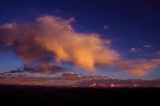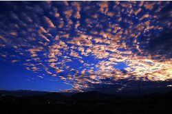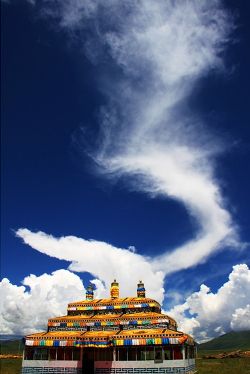 云在天上飄動,影子在大地上掠過,碧綠的草地在云流的映襯下五彩斑斕,猶如一塊巨大的迷彩布,把草地打扮得分外妖嬈。云不墨守成規(guī),每時(shí)每刻都有新創(chuàng)意;云有層次的美,有型有款。時(shí)刻花樣百出、千奇萬巧的云景,常使人遐想聯(lián)翩。我愛高原的云,因?yàn)橐嗾嬉嗷玫脑品路鸪闪诵撵`遠(yuǎn)游的載體,寄托著人們的留戀與追求。