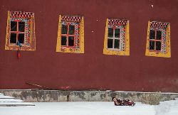 冬季的色達(dá),常常被皚皚白雪覆蓋,民居、帳篷、寺院、經(jīng)幡、牦牛點(diǎn)綴期間,美麗迷人。