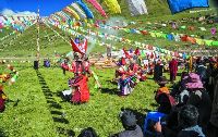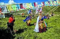 格薩爾王在藏族的傳說里是神子推巴噶瓦的化身,一生戎馬,揚善抑惡,宏揚佛法,傳播文化,成為藏族人民引以為自豪的曠世英雄。這是筆者在格薩爾誕生地——德格阿須草原現(xiàn)場拍攝的一組照片,它呈現(xiàn)了康巴藏區(qū)送文化下鄉(xiāng),牧民如過節(jié)一樣歡樂的盛況。該組圖片為演出現(xiàn)場。