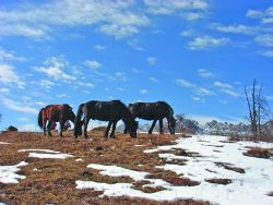 在高原,藍天、白云、白雪、冬樹、駿馬、無際曠野等都是美物,而這些,在2006年12月的某個雪后天晴的日子齊聚馬鞍山頂,讓我們飽享了一餐視覺盛宴,并印象深刻。