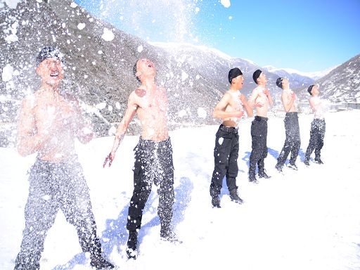 洗雪浴 練擒拿武警官兵雪原練兵忙