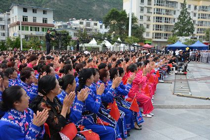 本次歌詠大匯共分為《紅色·記憶》、《天塹·通途》、《和諧·歡歌》三大篇章,現(xiàn)場展演的《七律·長征》、《歌唱二郎山》、《好兒好女好江山》等19個歌舞節(jié)目,全面展示了甘孜光榮的革命歷史、多彩的民俗文化、巨大的發(fā)展變化。