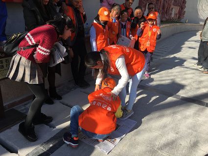 在瀘定橋上,小記者們向游客講述當年“紅軍飛奪瀘定橋”的英雄壯舉。在瀘定橋河西長廊,帶隊老師組織小記者和家長們進行了“向目標前進”的親子互動游戲,游戲?qū)议L和孩子的默契程度進行了考驗,鍛煉了他們的智力和體力。在瀘定紅軍紀念館廣場上,小記者們按照帶隊老師的要求進行拼接游戲,完成“小小紅軍支援前線”,獲勝的小組獲得了獎品。游戲結(jié)束后,小記者們在講解人員的帶領下參觀了瀘定紅軍紀念館,了解了許多相關(guān)的歷史知識。同時,小記者們以組為單位開展了“講紅色故事”活動,講解內(nèi)容涉及瀘定橋的修建、瀘定橋勇士英勇犧牲的故事等,讓小記者進一步了解到了瀘定縣的紅色歷史文化。