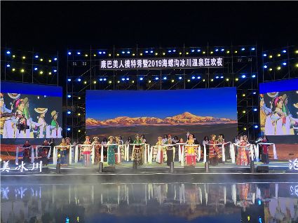 11月21日晚,康巴美人模特秀暨海螺溝冰川溫泉狂歡夜在神湯溫泉中心火熱上演,50名有著“東方美人”美譽(yù)的康巴姑娘和有著“格薩爾王”體魄的康巴漢子伴著原生態(tài)牧歌依次登臺亮相,率先開啟溫泉T臺服飾展演大幕。隨后,《Fashion Girl》、ViVi時尚舞團(tuán)、《甘孜踢踏舞》、魔方搖滾樂團(tuán)、《康定情歌》······中西合璧、形式多樣、精彩紛呈的節(jié)目陸續(xù)上演,“最炫民族風(fēng)”的演出燥熱夢幻舞臺,“冰與火”的狂歡夜深受廣大現(xiàn)場觀眾的喜愛。圖為活動現(xiàn)場。