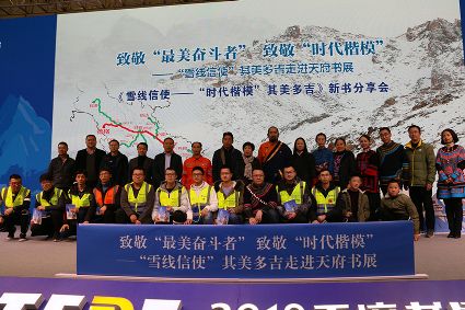 分享會(huì)的座位上,精美禮品袋里裝放著今天的“主角”——新書(shū)《雪線(xiàn)信使——“時(shí)代楷模”其美多吉》。翻開(kāi)書(shū)本,“他是流浪地球上的康巴漢子”“他是圣潔甘孜的大愛(ài)之人”“他是絨麥峨扎的忠誠(chéng)信使”的句子映入眼簾。