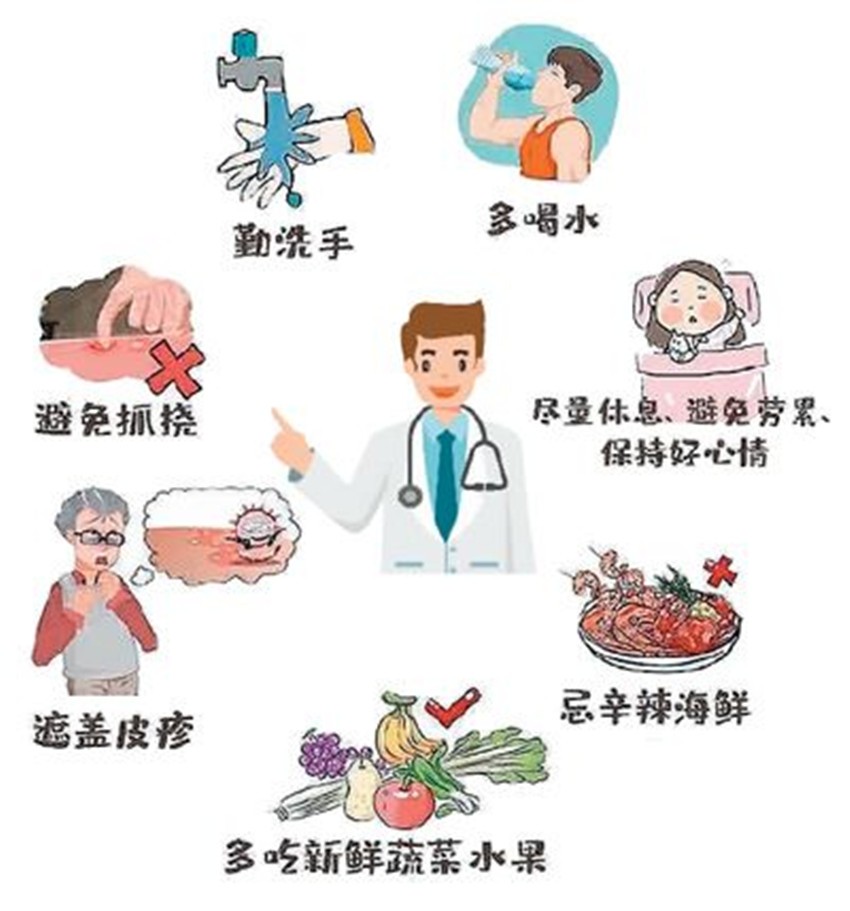 專家提醒,帶狀皰疹主要通過接觸傳播,抵抗力低的老年人和兒童應(yīng)避免接觸帶狀皰疹患者。與此同時(shí),中老年人以及有自身免疫缺陷的人群要注意休息,合理飲食,加強(qiáng)鍛煉,增強(qiáng)抵抗力;糖尿病、腫瘤等患病人群,要特別留意觀察自身免疫狀況,養(yǎng)成良好生活習(xí)慣,有效控制原有疾病;年輕人也不能掉以輕心,避免頻繁加班、熬夜等導(dǎo)致抵抗力下降。一旦發(fā)現(xiàn)患有帶狀皰疹,要盡快就醫(yī),同時(shí)注意避免抓撓皮疹處,勤洗手、多喝水、多吃新鮮蔬果,忌辛辣及海鮮,多休息,避免勞累,保持好心情。