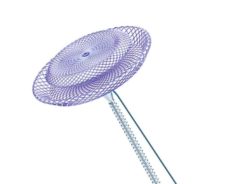 經(jīng)過反反復(fù)復(fù)的嘗試,最終把封堵器做成了雙盤內(nèi)凹結(jié)構(gòu),并通過高溫?zé)岫ㄐ图疤厥狻版i扣”設(shè)計等,實現(xiàn)“非形狀記憶的材料達到形狀記憶的功能”。