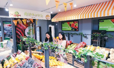蘇寧小店主打生鮮、果蔬、熱鮮食等品類,致力打造成社區(qū)的“共享冰箱”。圖為蘇寧小店內景。(蘇寧供圖)