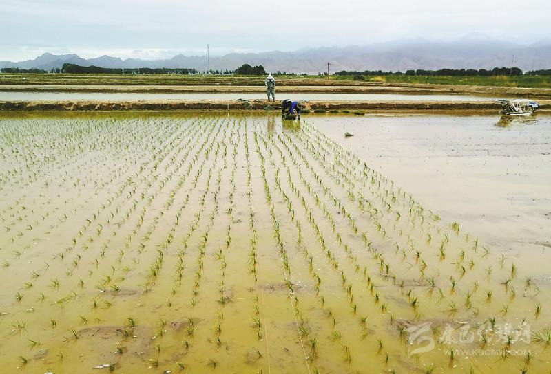 青島海水稻研究發(fā)展中心培育工程師張國(guó)東介紹,6月5日,在海拔2800米的河西農(nóng)場(chǎng),第一株高原寒地海水稻“踏入”柴達(dá)木盆地的荒灘里,“到19號(hào),機(jī)插秧階段基本完成,之后還要進(jìn)行補(bǔ)苗、灌水、排水、施肥等工作,實(shí)施水肥藥一體化管理并做好田間水稻生長(zhǎng)情況記錄等?!?/p>