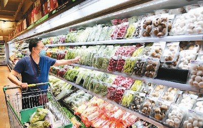 圖為7月9日,消費(fèi)者在江蘇省連云港市連云區(qū)海棠路一家超市購物。