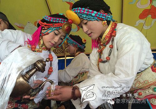 刀插在腰后,露出把來。據(jù)說,前二十年,藏族男子幾乎人人帶刀,還是一尺來長的砍刀,喝點小酒,一言不合,就拔刀相向?,F(xiàn)在,由于管制,帶刀的人已經(jīng)越來越少了,即使有,帶的也是小刀,主要用于割肉吃。
