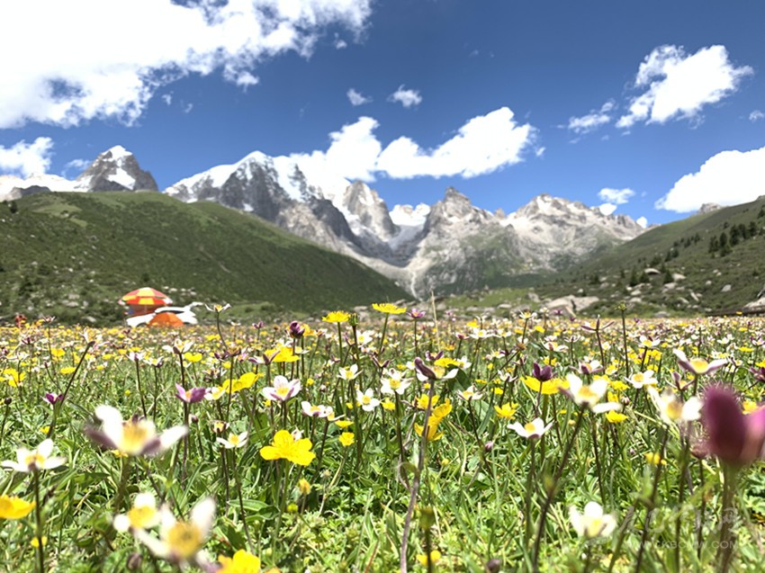 野花嶺位于德格縣柯洛洞鄉(xiāng),距離縣城約30公里,地處國道317旁,溝谷長約6公里,溪流、雪峰、奇石、野花等資源豐富,其中野花上百種,具有珍惜藥用價值野花達(dá)到30多種,春季時野花遍地,美不勝收。