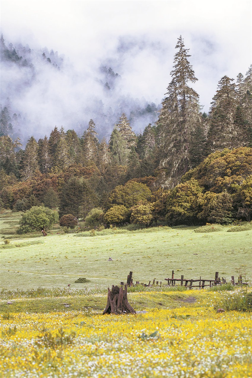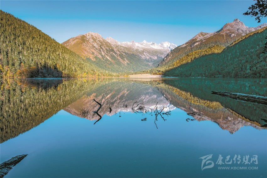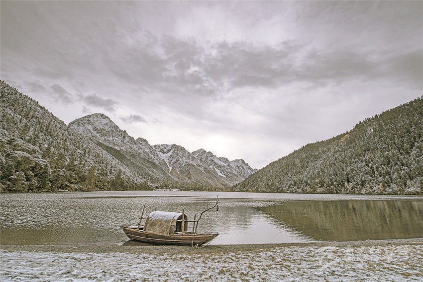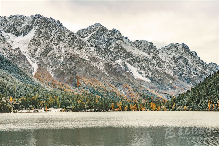 伍須海的色彩,四季都會變化,秋天最為精彩,滿湖的深綠,青黛的暗針葉林,金黃色的紅杉,火紅的槭樹,褐色的高山櫟,以及點(diǎn)綴于其間的沙棘果實(shí),都五彩繽紛地點(diǎn)染著這張“畫布”。