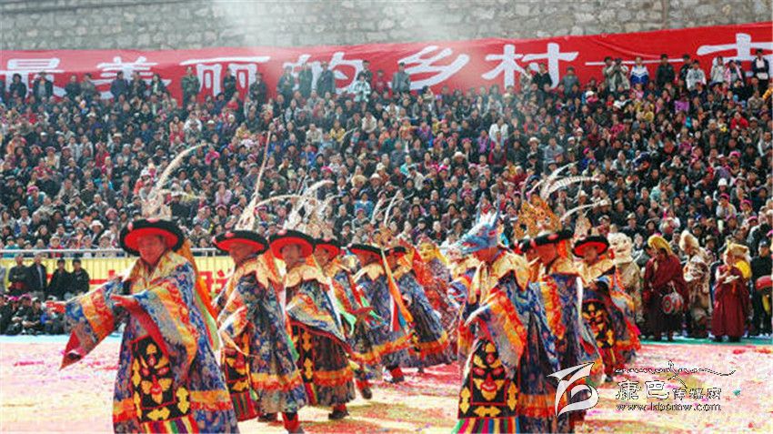 十七世紀(jì)時,丹巴巴底大坪村阿洛、益西降稱等喇嘛去西藏學(xué)經(jīng),求學(xué)期間,征行九世班禪同意在日喀則扎什倫布寺學(xué)習(xí)藏戲,學(xué)了《呷拉翁布》(另名《卓瓦桑姆》)和《甲扎共龔》(譯為《文成公主》)二劇的唱腔、鼓鈸奏法、表演技巧,帶回巴底黃金寺,挑選寺中30余名僧徒成立黃金寺藏戲團。此后,每年都在規(guī)定時間演出。丹巴中路藏戲,是中路寺廟喇嘛去西藏學(xué)經(jīng)時帶回的。