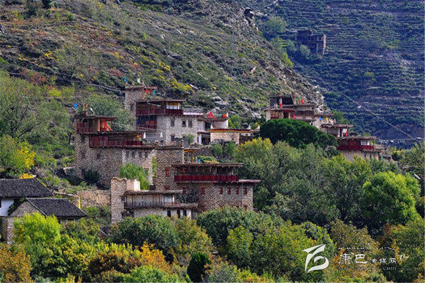 遠遠看去,充滿靈氣的山谷中,翡翠般的青草綠樹之中,是那沉甸甸的田地和隱在密林深處的寨房,伴著時有時無的潺潺溪流,一幅富有動感的絕妙山寨畫卷隨之展示在你的眼前。山寨依山面水,周圍綠樹掩映,藏寨從大金河谷層層疊疊向上攀沿,錯落有致的散布在山坡上,一直延伸到卡帕瑪群峰峰的腳下,非常的漂亮。