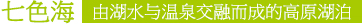 位于仙乃日與央邁勇之間,海拔4600米,在牛奶海的上方,翻上一片陡峭的山岡,再上升100 多米,在山脊上就能俯瞰五色海了,湖面呈圓形。面積0.7 公頃,水色變化無窮。五色海由于會在光的折射下,產(chǎn)生五種不同的顏色而得名。其藏名為“木底錯”、“單增錯”,是藏族聚居區(qū)著名的圣湖(佛經(jīng)中贊譽該湖與西藏羊卓雍錯齊名),據(jù)傳能“返演歷史,預(yù)測未來”,有很多宗教上的傳說。