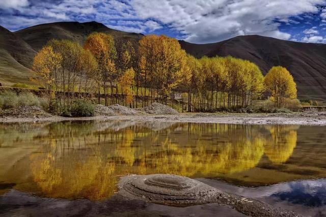 秋天是新都橋最爛漫的季節(jié),陽光給山巒籠上金黃的暖色,景色如畫的小橋、流水、人家,滿滿的高原藏家風情。