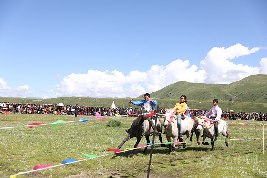 馬尼干戈鎮(zhèn)全境橫貫國道317線,是德格典型的純牧業(yè)鄉(xiāng)鎮(zhèn),轄區(qū)內(nèi)地廣人稀,草場豐富,有著十分豐富的牧俗文化,“西天瑤池”玉隆拉措也坐落于此。每年的7月底8月初舉行的賽馬節(jié),是當(dāng)?shù)刈顬槁≈氐膫鹘y(tǒng)民族節(jié)日之一。在雪域高原上綠草如茵、各類鮮花爭相斗艷的最美時(shí)節(jié),牧民們會(huì)身著華麗的藏裝,自發(fā)聚集在一片開闊的草場上,搭帳篷、唱歌跳舞,并開展賽馬、賽牦牛、賽跑和馬技表演、趣味游戲等民俗民間活動(dòng),增進(jìn)相互之間的感情,促進(jìn)鄰里和睦。