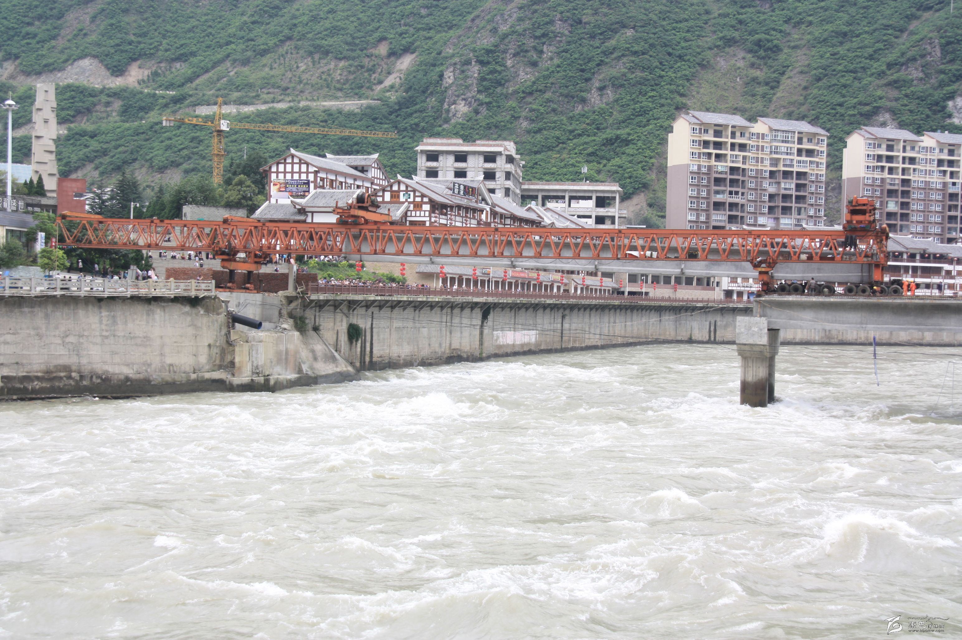 2015年9月中旬,葛洲壩集團(tuán)瀘定項(xiàng)目部,順利、安全完成“城南大橋”拆舊建新第3跨T型梁的架通,標(biāo)志新“城南大橋”主體修建成型。遠(yuǎn)觀新橋氣派壯觀。目前大橋施工方正加緊工期,對(duì)新橋第三跨的橋面混凝土澆鋪硬化,接著是橋欄的安裝。施工方承諾:2015年10月底新橋先行通人,保證年底通車。屆時(shí),一座引用原橋名,在原橋址上新建,屬特大預(yù)應(yīng)力混凝土梁式(T型梁)主跨3跨,全長(zhǎng)170米,橋面寬11.5米,其中2×2米人行道+7.5米機(jī)動(dòng)車道,嶄新壯觀“城南大橋”同舊“城南大橋”一樣得到過(guò)橋人的敬重和欣慰。2013年12月被拆除的舊“城南大橋”由此從人們的視野中消失了。但橋名被保留下來(lái)了,舊橋的容貌被印在攝影愛(ài)好者的照片里了。
