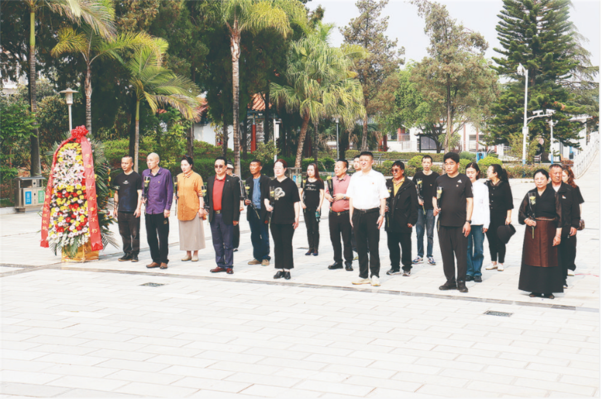 手捧鮮花緬懷革命烈士。