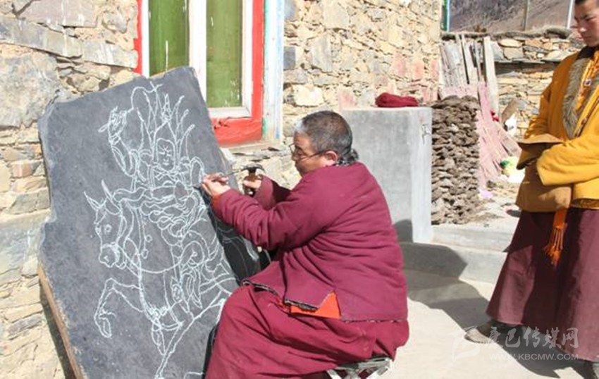 道孚縣東部的龍燈壩曾是格薩爾王征戰(zhàn)過的地方,這里以“格薩爾通”為核心的格薩爾文化世代流傳、積淀深厚,且富有質地堅硬、品相良好的天然頁巖。在歲月的長河中,龍燈人把傳統繪畫、歷史傳說和石刻工藝緊密融合,創(chuàng)造了獨具特色的龍燈石刻,填補了格薩爾文化在藏族石刻中的空白。千百年來,龍燈人像傳承基因一樣世代傳承著這門“專屬”工藝。