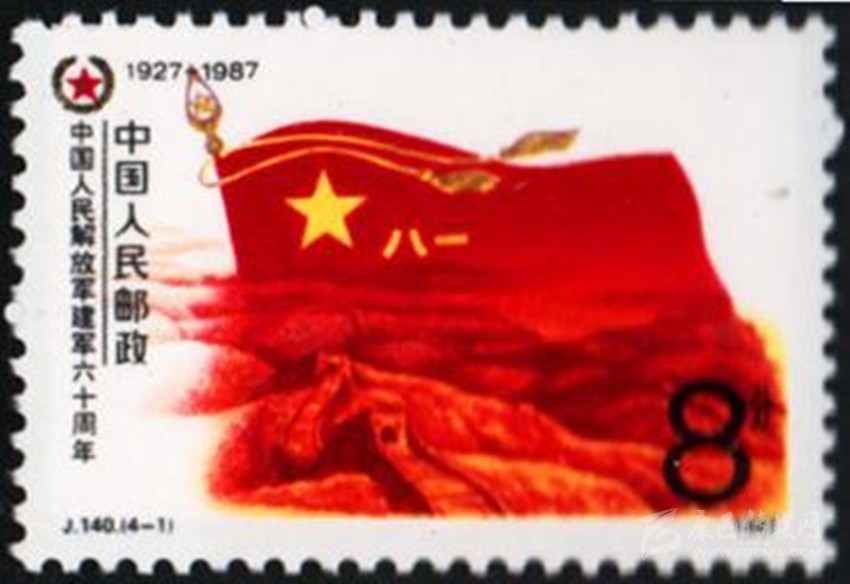 1977年8月1日原郵電部發(fā)行的《中國人民解放軍建軍50周年》紀(jì)念郵票,其中第4枚“雄師過大江”,圖案中一名沖在渡江隊(duì)伍前面的戰(zhàn)士高舉一面“八一”軍旗。1987年8月1日原郵電部發(fā)行的《中國人民解放軍建軍60周年》紀(jì)念郵票一套4枚。其中第1枚“軍魂”,郵票上一面鮮紅的“八一”軍旗迎風(fēng)飄揚(yáng),旗下是蜿蜒的萬里長城,代表了中國人民解放軍是保衛(wèi)祖國和人民的“鋼鐵長城”。1995年8月1日,原郵電部試發(fā)行一套“義務(wù)兵專用”郵票一套1枚,票名為“神圣的使命”,圖案以紅光四射的“八一”軍旗為背景,以現(xiàn)代化的飛機(jī)、坦克、火箭和象征和平的白鴿為襯托,畫面是威武的陸??杖姡@示我軍鋼鐵長城般攻無不克、戰(zhàn)無不勝的精神風(fēng)貌。