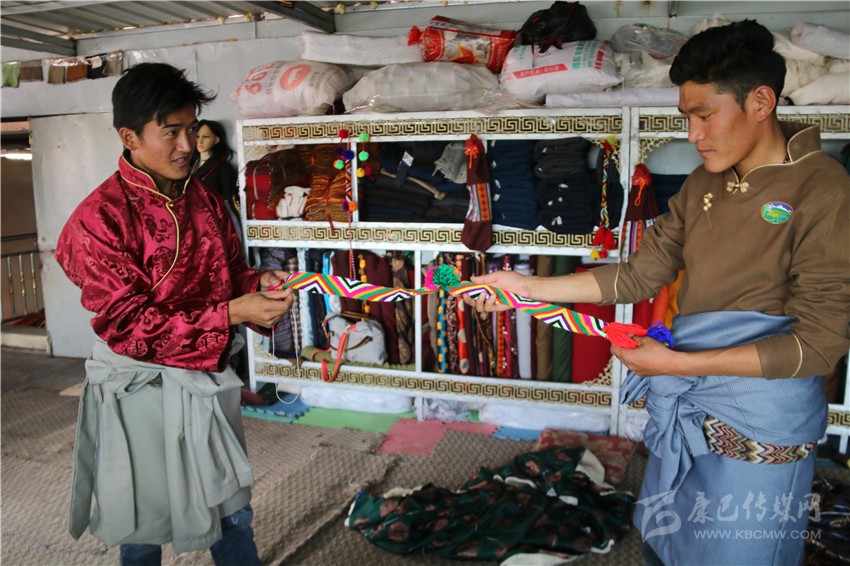 安孜鄉(xiāng)作為白玉縣海拔較高的鄉(xiāng)鎮(zhèn)之一,夏天是十分短暫的,連日來(lái)的晴好天氣,也透著絲絲寒氣。牧民阿剛想要量身定做一套過冬的藏裝,9月13日,他來(lái)到白玉縣阿察鎮(zhèn),一家民族服飾商貿(mào)公司吸引了他的目光。“我們這里的服裝面料是本地羊毛和從浙江進(jìn)的上等面料,做工考究,很多工序是純手工制作,服裝樣式你可以根據(jù)你的喜好指定,我們包你滿意?!钡陠T仁真熱情地介紹。聽了仁真的介紹,阿剛用手捻了一下服裝用料的質(zhì)地,看到印有“祥陽(yáng)措”商標(biāo)的精美包裝袋,商店里擺放的五彩斑斕、高端大氣的藏式男女服裝,他有些動(dòng)心了?!吧a(chǎn)這些服裝的都是我們納塔鄉(xiāng)的牧民,你可以考察我們的服裝用料、生產(chǎn)流程,再作打算?!比收鏌崆檠笠绲亟榻B說。
