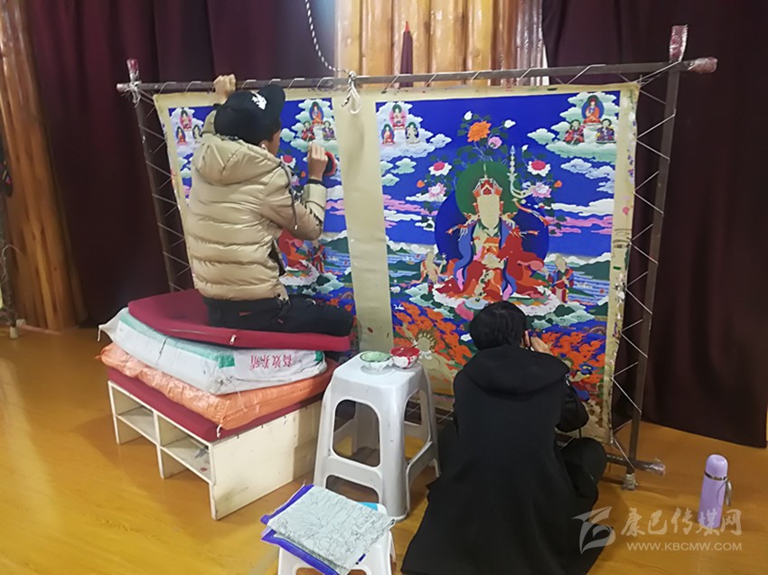 爐霍縣是茶馬古道重鎮(zhèn)、康北中心,也是著名的中國唐卡繪畫藝術(shù)之鄉(xiāng)。郎卡杰唐卡演展中心也是郎卡杰唐卡藝術(shù)有限公司所在地,根據(jù)介紹,該公司有畫師近200名,年產(chǎn)精品唐卡200余幅,意即每人每年只能繪制一幅作品。雍珠洛吾告訴記者,畫一幅唐卡需要投入巨大的勞力與心力,需要花費漫長的時間,短則半年,長則需要十余年。按照傳統(tǒng)說法,“一幅唐卡,要布谷鳥叫三次才能完成。”布谷鳥叫三次就是三年。