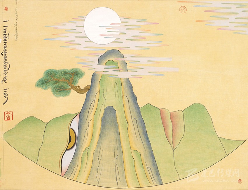 15世紀(jì)以來,唐卡發(fā)展所恒定的兩個(gè)元素:一是平面構(gòu)圖的神佛之境,另一則是吸收大青綠山水精髓。正如DNA鏈的雙螺旋結(jié)構(gòu)一般,使唐卡繪畫在歷史時(shí)空中穿插縈繞,在雪域各地生根開花。到了公元20世紀(jì)初,照片的高度寫實(shí)促使藏地畫家邁出了革新步伐,使得唐卡繪畫逐漸擺脫傳統(tǒng)束縛,開啟了“人”的覺醒。衛(wèi)藏地區(qū)出現(xiàn)了“根敦群培、安多強(qiáng)巴”引入寫實(shí)主義的嘗試,成為當(dāng)今西藏“布面重彩”的先驅(qū)。新中國成立后,內(nèi)地的美術(shù)創(chuàng)作積極影響了三大藏區(qū)的繪畫發(fā)展,上世紀(jì)80年代,四川康區(qū)“甘孜藏畫”肇起,在《嶺·格薩爾王》人文主義的召喚下,《雪山兒女》《唐東杰布》《新概念唐卡》正從歷史深處一路走來。而近年來,安多藏區(qū)則創(chuàng)新出了“藏族祥巴版畫”,祥巴版畫不僅是從材料技法上對西藏繪畫的豐富,更是藏地畫家們在自覺不自覺的求新、求變;甚至在傳統(tǒng)唐卡領(lǐng)域,民間畫師也都在紛紛嘗試將傳統(tǒng)唐卡和現(xiàn)代審美相結(jié)合。這一切,正是唐卡繪畫從傳統(tǒng)走向現(xiàn)代、由宗教博衍至生活的演變過程,在這個(gè)過程里,藏地畫家不僅在畫面的形式和語言上完成了傳統(tǒng)與當(dāng)代的統(tǒng)一,還將西藏的審美特質(zhì)虹化為作品的精神內(nèi)核。這也是唐卡藝術(shù)第二次“從香巴拉到人間”的過程,成為民族文化發(fā)展的新坐標(biāo)。