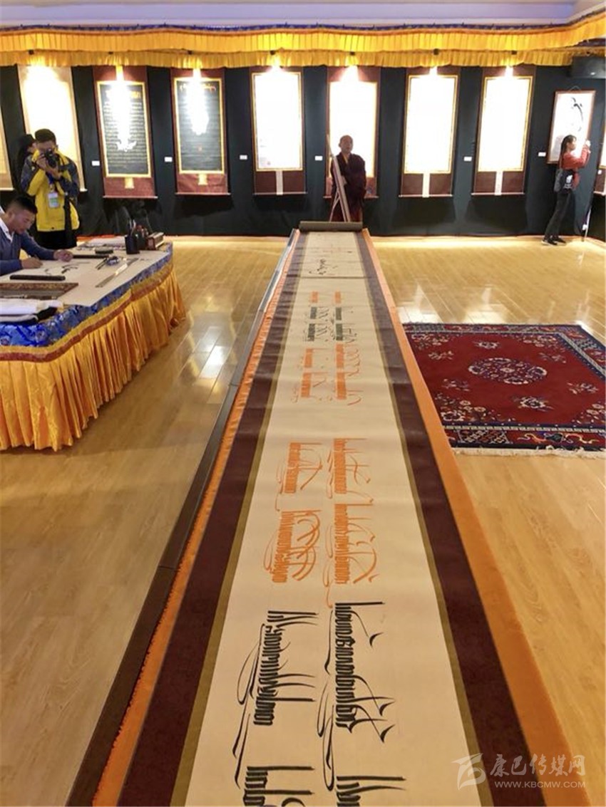 站在“倉央嘉措詩歌藏文書法百米長卷”面前,來自成都的徐賢前感嘆到:“我一直都很喜歡倉央嘉措的詩歌,但從來沒有想過可以通過書畫的形式來展現(xiàn)倉央嘉措詩歌,雖然我看不懂藏文,但是依然感到震撼,這次我真是不虛此行??!”據(jù)了解,在詩歌節(jié)期間,理塘縣電子商務(wù)孵化中心書畫文化廳內(nèi)展出由縣級非遺卓擦?xí)▊鞒腥?、縣級非遺噶瑪嘎孜派唐卡傳承人、縣書法協(xié)會成員等集合而成的近60幅藏漢書畫作品。其中,首次對外展出的“倉央嘉措詩歌藏文書法百米長卷”引來了眾多參觀者的圍觀。
