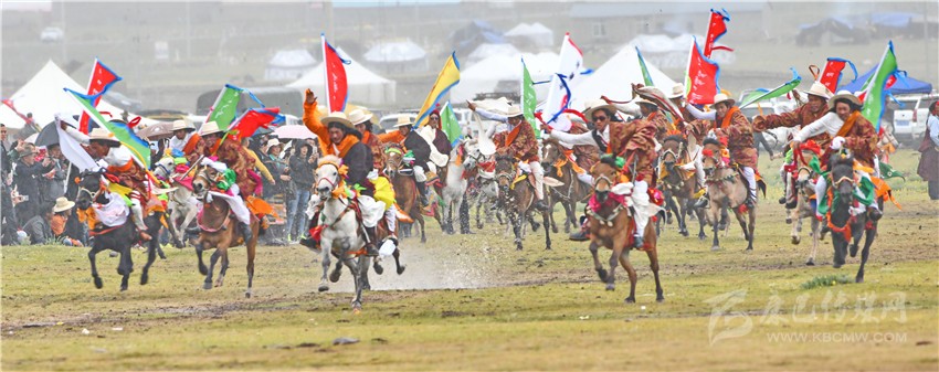 “神駿飛蹄沖云霄,箭過耳畔風(fēng)蕭蕭。眨眼已達(dá)終點(diǎn)線,歡呼聲起似驚濤?!薄@是今年理塘賽馬會現(xiàn)場最貼切的寫照。8月3日上午,在“馬術(shù)之鄉(xiāng)”的理塘縣八一賽馬場,禮炮聲響還未散盡,來自曲登鄉(xiāng)、高城鎮(zhèn)、格木鄉(xiāng)、奔戈鄉(xiāng)、禾尼鄉(xiāng)及村戈鄉(xiāng)共計(jì)1000名草原騎手齊登場,他們忽而馬背倒立,忽而藏身馬肚,忽而俯身拾哈達(dá),忽而飛槍射擊,繪出一幅壯闊人心的畫面。