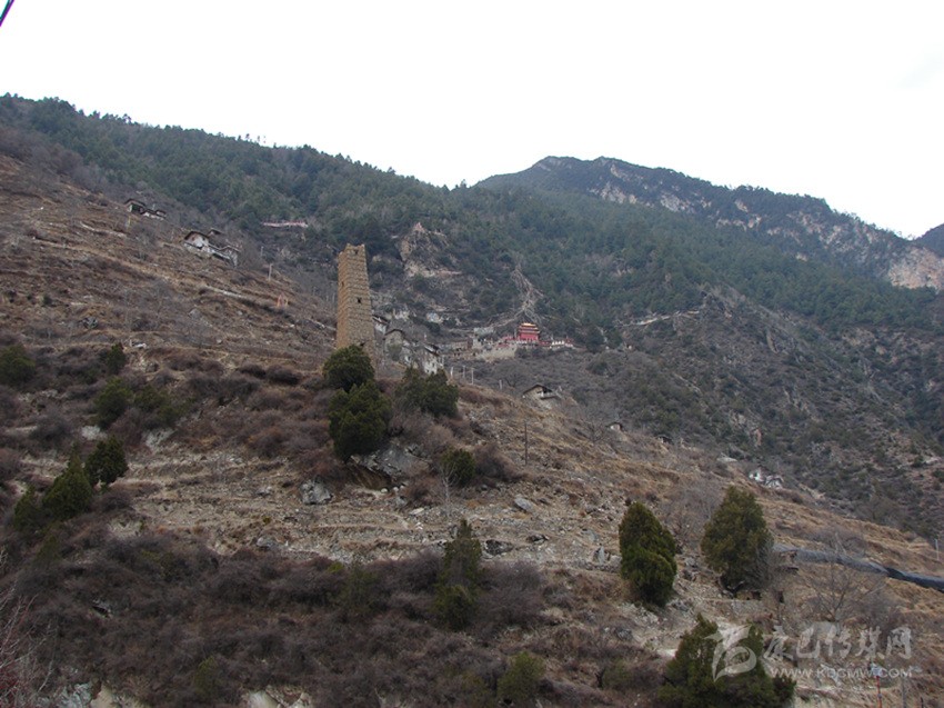 半山腰處,有三座高約三十余米的碉樓,因?yàn)榻ㄔ谏桨?,顯得更加的高大。古碉的外墻上,墻筋外露,層層疊疊,非常的美觀。在丹巴,人們習(xí)慣將這種墻筋外露的碉樓稱為母碉,而墻筋不外顯的則稱為公碉。這種母碉在丹巴的其它村落也可以尋覓到它的蹤影,不過如此密集修建在一起還不多見。