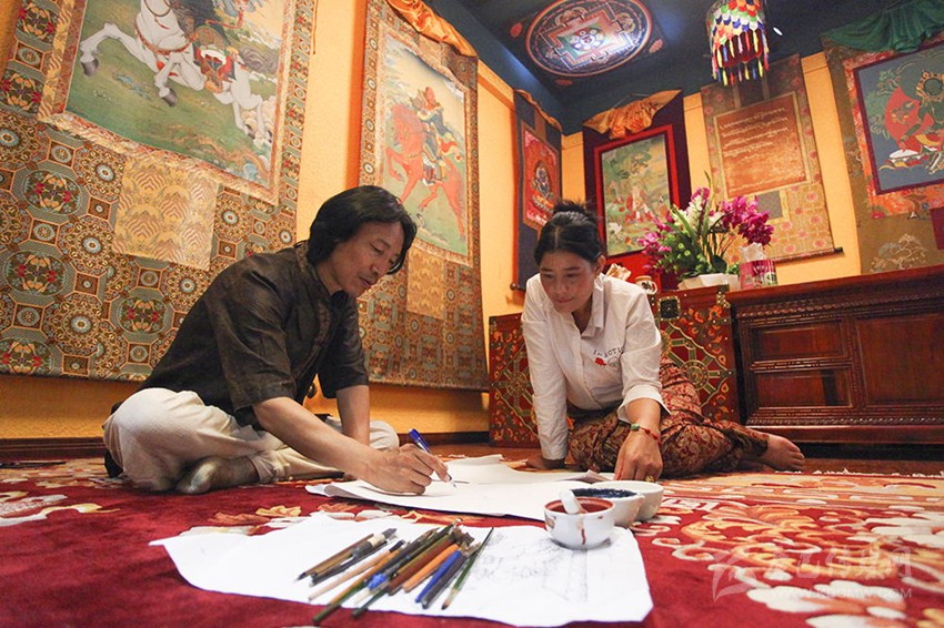 春去秋來,拉孟的畫藝也精進(jìn)了不少。因?yàn)橹鞴ヌ瓶ó?,拉孟有了不少“粉絲”,許多人還專門前來拜師。在拉孟看來,有人學(xué)畫唐卡是好事,自己不該破壞這份美好。于是從1998年起,他便開始免費(fèi)收徒授藝。