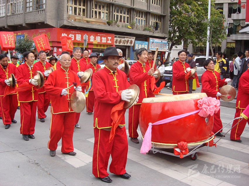 大年三十夜,山谷中的康定城廓鼓聲震天,“鬧山鼓”將過年的氣氛推向了高潮。當(dāng)年“鬧山鼓”打得最好的是一位人稱“韓八爺”的陜西漢子,后來“韓八爺”打不動了,由另一家陜西戶縣來的姓徐的人家接替。徐家老父打不動了又傳給了徐大哥。到徐大哥操鼓槌時,參與打鼓的已不再全是陜西人了,康定熱愛這鼓聲的藏、漢、回族漢子也參與進(jìn)來,成了多民族的鼓隊。這原本屬于陜西戶縣的“老陜鼓”,如今在戶縣卻打不全了。徐大哥健在時說,“鬧山鼓”鼓譜共有20多節(jié),那年他回戶縣探親,戶縣的鼓匠最多只能打一半的鼓譜,而在康定,全套的鼓譜卻被這支多民族的鼓隊流傳了下來。