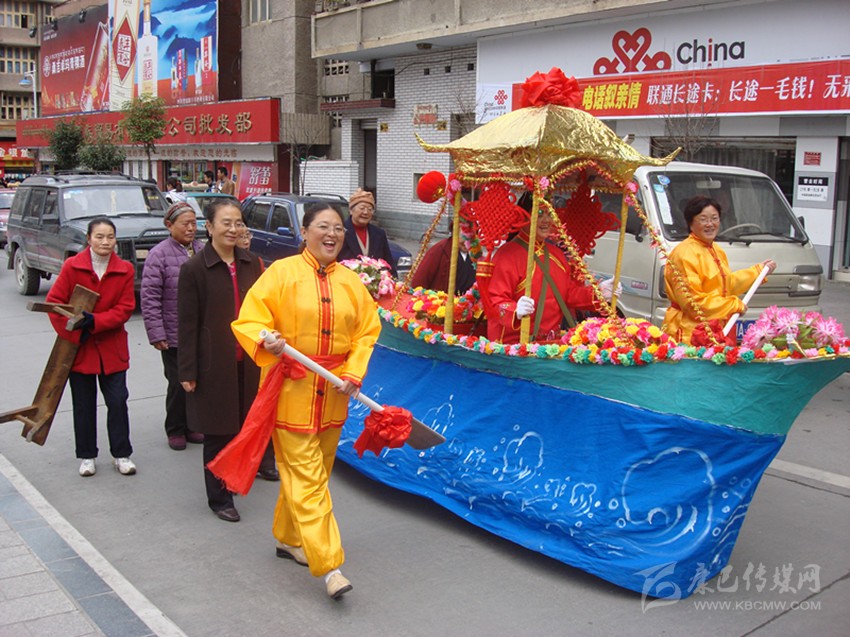 半個世紀(jì)風(fēng)靡康定城的“船燈”、“馬馬燈”、“鬧山鼓”、“扭秧歌”、“笑頭和尚戲柳翠”、“霸王鞭”……整個兒就像老陜過年時的“社戲”場面。大年初一、十五夜“出燈”游街,熱鬧氣氛把整個年節(jié)塞得滿滿的。記得我孩童時見過一次“出燈”游行,不是晚上而是在大白天(叫“出游”)。寺廟喇嘛吹奏佛樂走在前面,接著是“川北”人的川劇鑼鼓;再后面跟著的就是“馬馬燈”、劉老陜的“船燈”、鐵木社的“龍燈”、二輕局的“霸王鞭”、南門上的弦子隊、三居委的腰鼓隊、北三巷的“道孚鍋莊隊”……游行隊伍遇街口寬敞地方必圍圈演出?!叭死侠玻死侠?,人老先從頭上老,白的多來黑的少, 開——船——羅!”“銀須飄灑”的艄公劉老陜用俏皮逗趣的陜腔告白開場詞,在歡喜鑼鼓的伴奏中“劃”著旱船出了場。旱船闖“急流”、過“險灘”,風(fēng)趣又逼真;如果哪家的姑娘打扮成古裝戲里的嬌美仕女坐上旱船游了街,那她立馬就成了康定城人皆贊譽的“美女”。接著就是“馬馬燈”,幾十個“騎馬橫槍”的古裝將士馳騁上場,排兵布陣,穿梭并行,“馬”鈴聲鼓樂聲交織一起……鬧翻了康定城的“三山二水”。