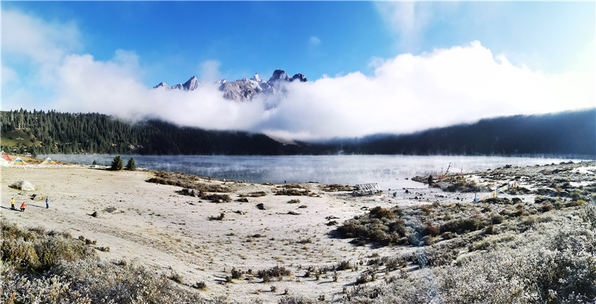 杏花又開了。我又一次到了老鴰林的“親戚”家。老阿媽打了濃香的酥油茶,做了“嚇呷克”(普米語,麥子饃),鋼爐上放滿了大大小小的牦牛肉塊,兩位老人日漸紅潤的面龐上全是笑容。他們唯一的兒子,就是那個瘦小個兒,難以抑制豐收的喜悅,忙前忙后,雙手遞上“卡熱”(普米語,核桃)。