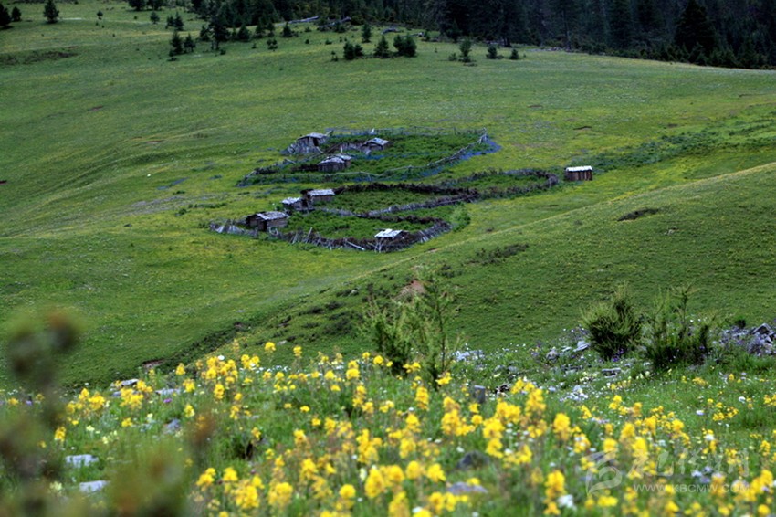 在雅江縣城西邊約60公里處,有一處山水秀麗的地方,由于遠離公路,這地方一直“養(yǎng)在深閨人未識”。自然風光格外秀麗姑且不說,只說那處地名為“郭崗頂”的、地形如“蓮花寶座”的山谷草壩上,緊靠一塊圓圓的叫做“太陽”、另一塊彎彎的叫做“月亮湖”的兩個湖泊旁,有一處龐大的古建筑群遺址赫然入目,讓人驚嘆不已。不遠處,一座已有600多年歷史的“郭沙寺”,也好像是在守望著不遠處這群讓人遺忘的古舊破敗的建筑。
