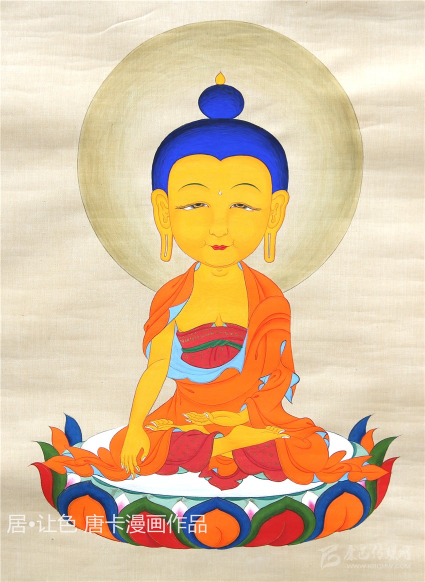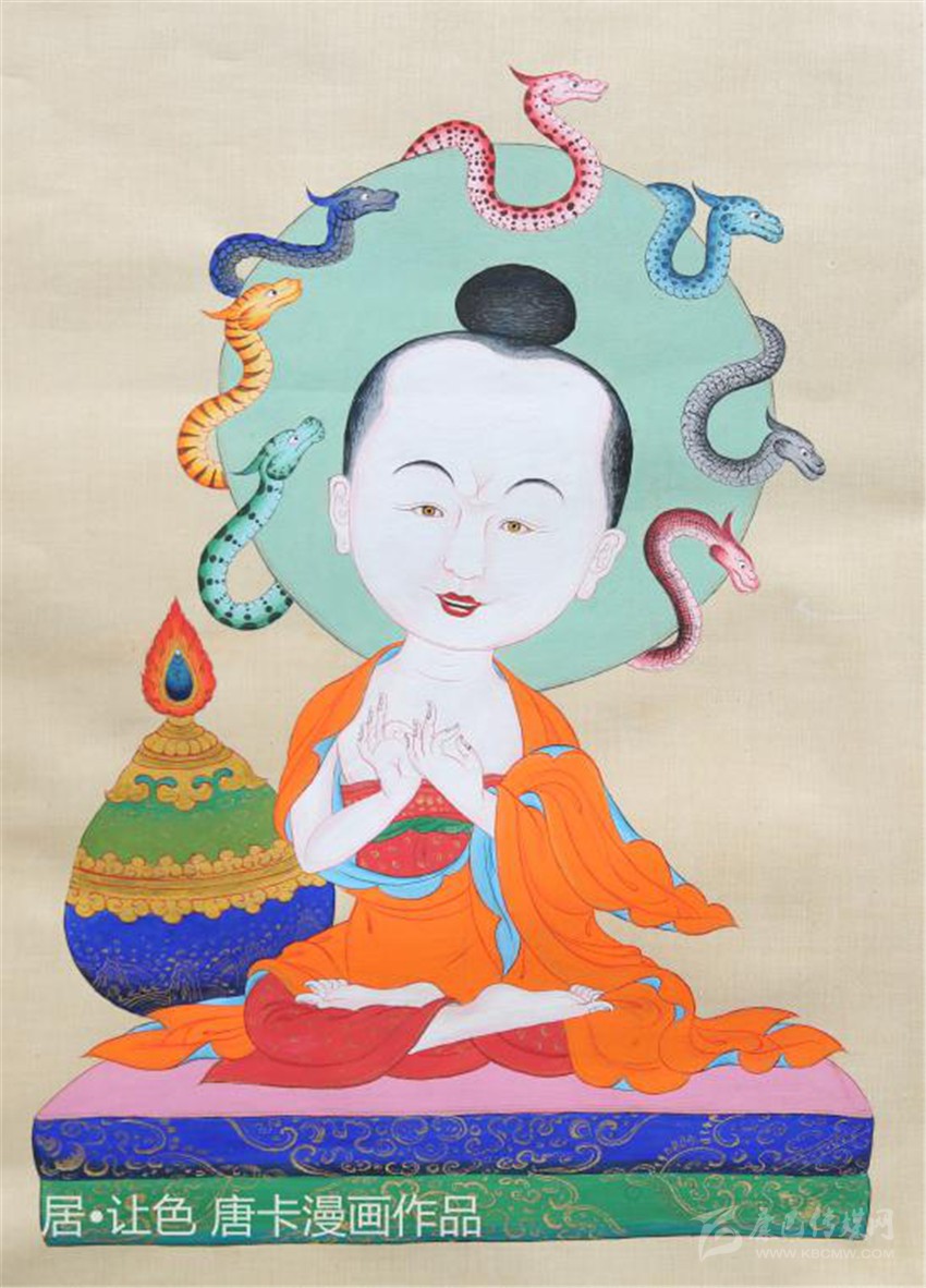 唐卡是藏族最具代表性的藝術(shù)門類之一,在其千年的傳承歷史中吸收融合了印度、尼泊爾等多地的藝術(shù)元素,發(fā)展成為極具雪域特色和審美價值的藝術(shù)形式。傳統(tǒng)唐卡缺乏立體感和形象感,畫面層次模糊,人物形象單薄,不利于民族文化傳承,“對于不懂畫的人來說,這種畫法他們看不懂。”基于此,居·讓色對唐卡繪畫技法作了改良,結(jié)合現(xiàn)代漫畫,以寫實的手法,實現(xiàn)活態(tài)傳承、永續(xù)流傳目的。
